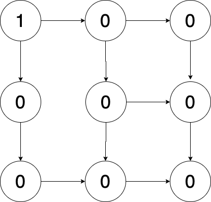 처음에 0으로 초기화시키고 1을 0,0에 설정해준다.